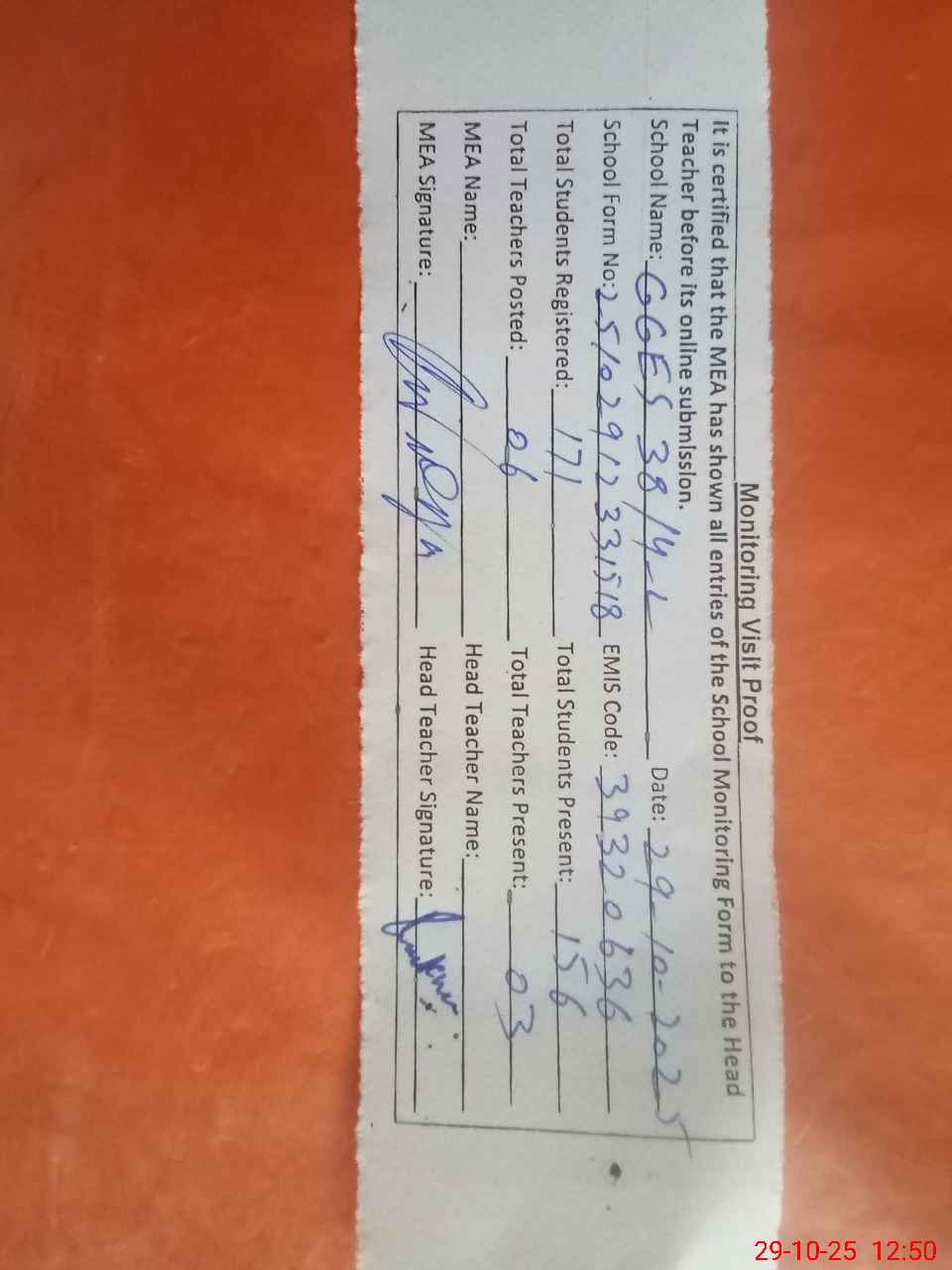 | Certified that this School was Inspected by the Undersigned MEA/DMO Today and the Information Stated Above is as Per Record. | |||||