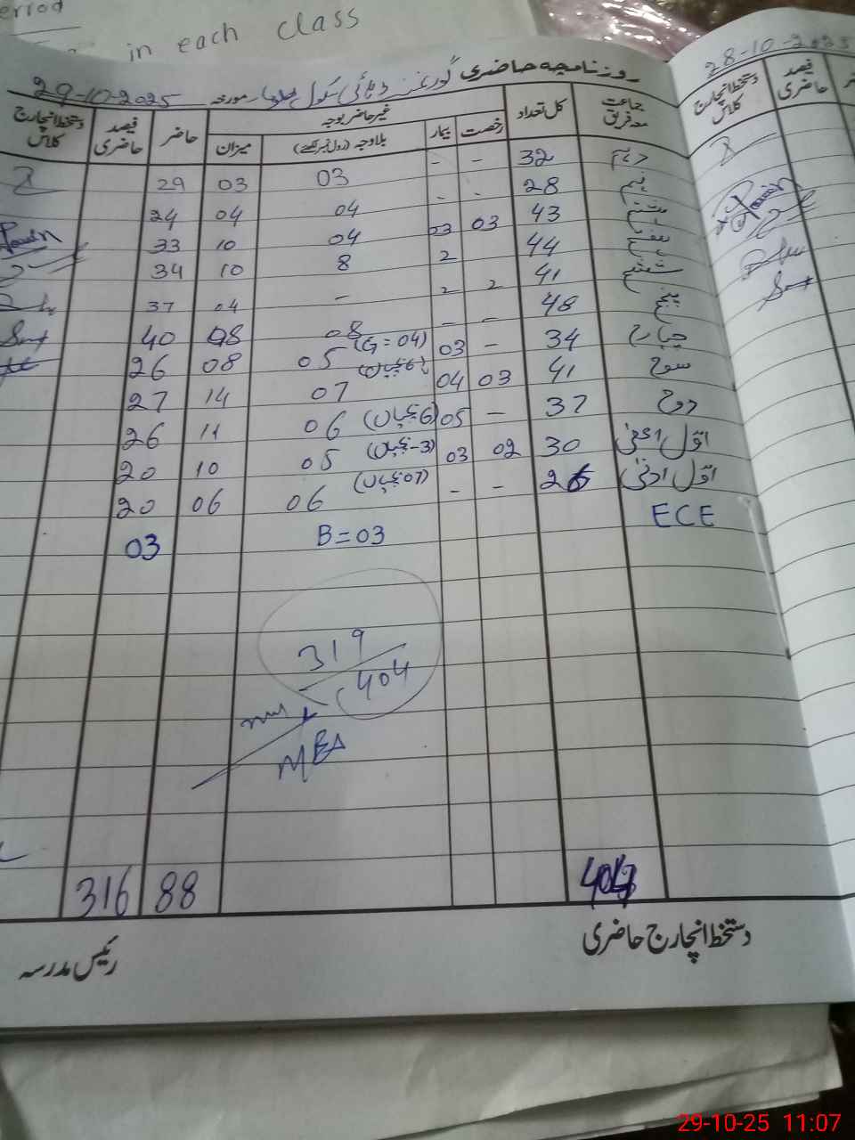 | Total Students Present | 3 | 0 | 20 | 20 | 26 | 27 | 26 | 40 | 37 | 34 | 33 | 24 | 29 | 319 | ||