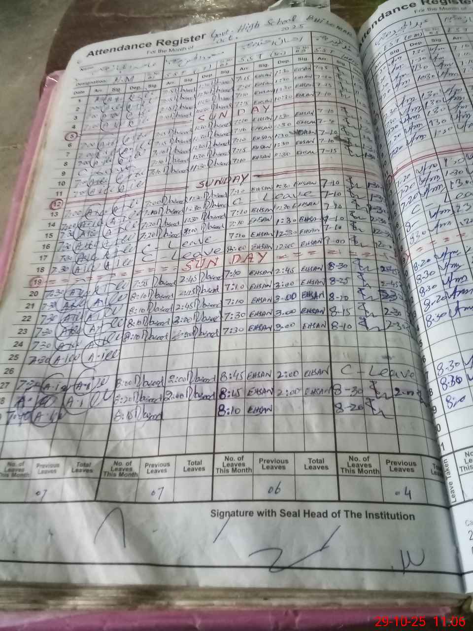 | CNIC | Full Name | Designation | R/C | Absence During Last Calender Month |