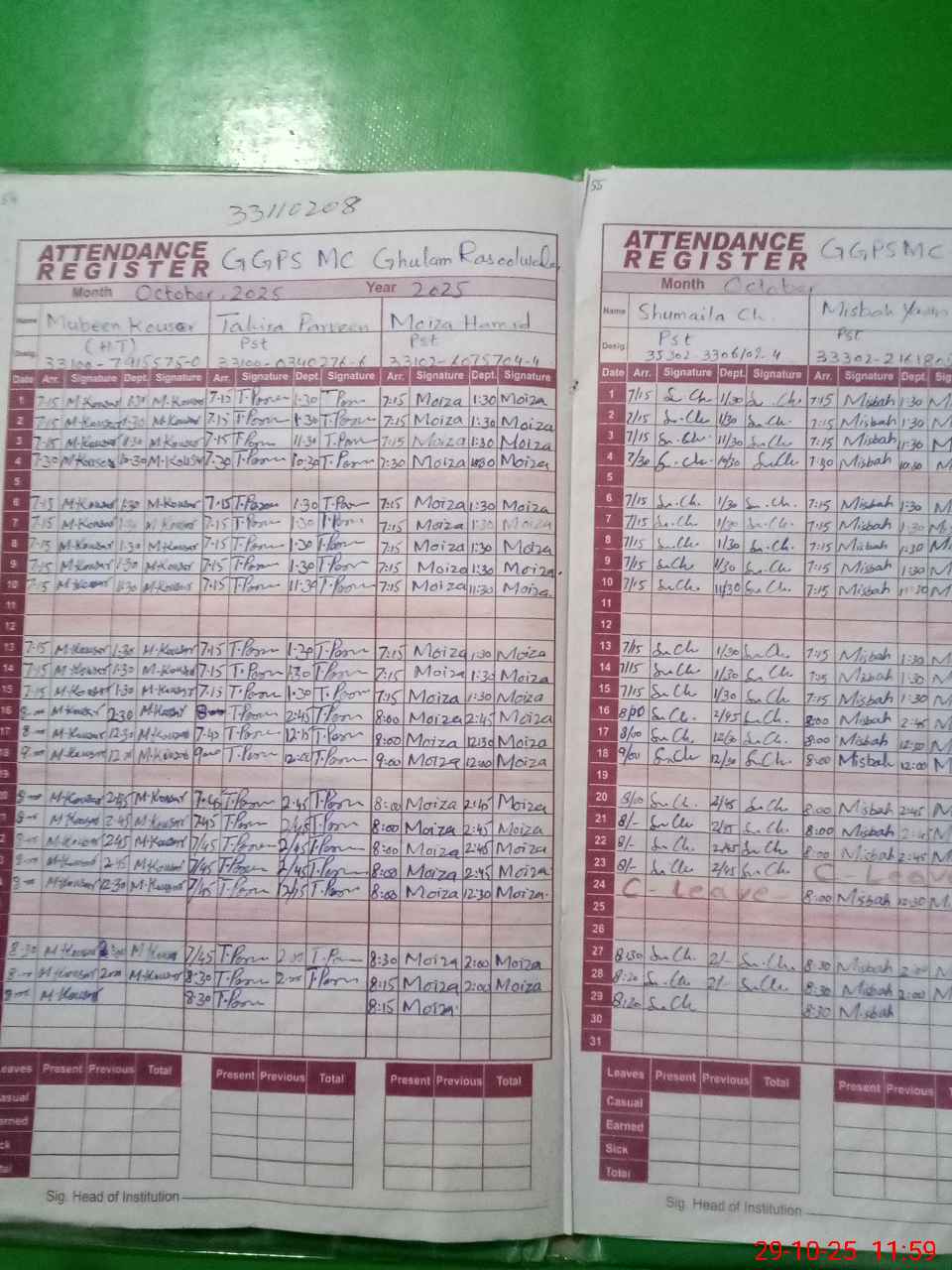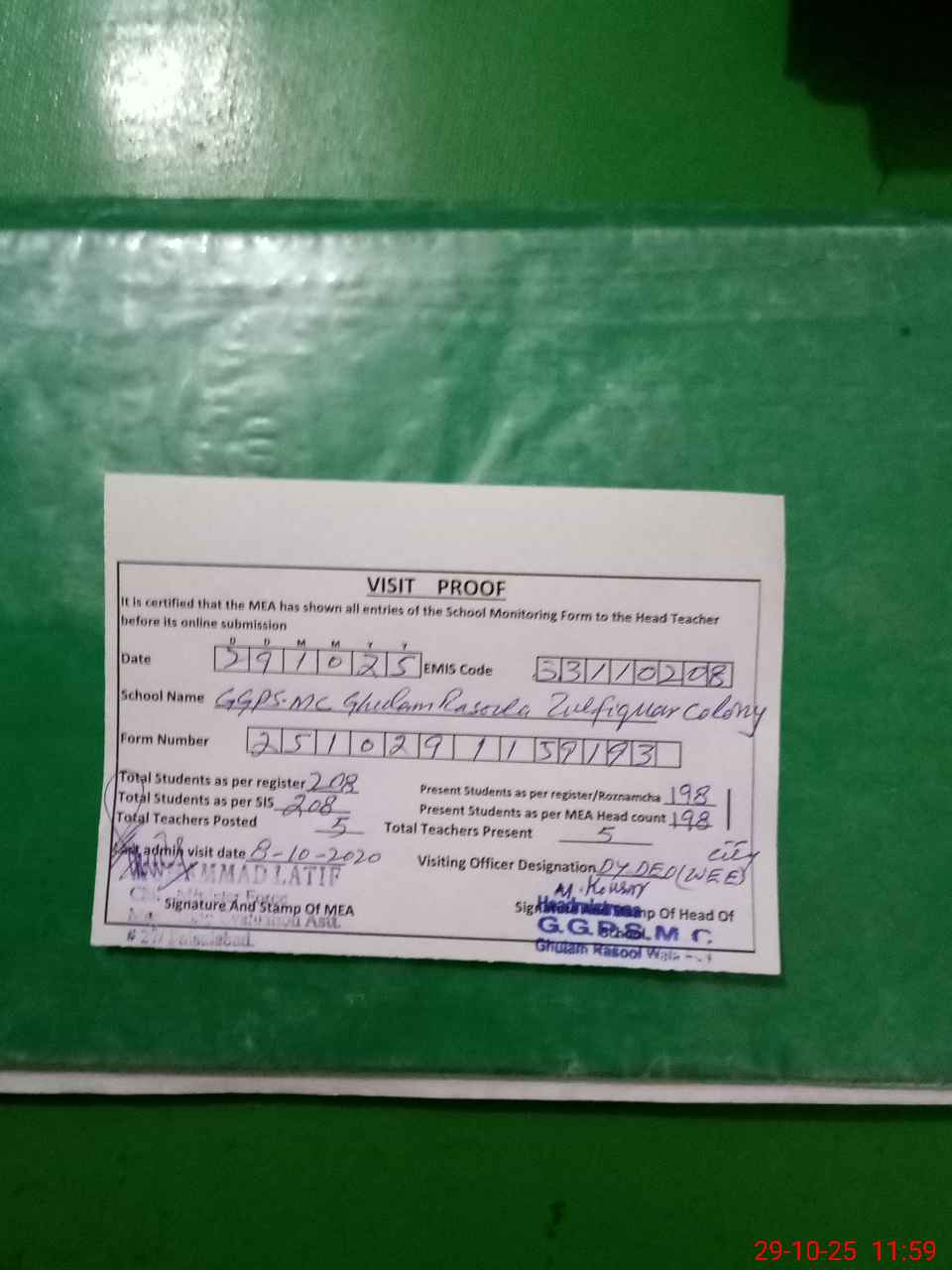 | EMIS Code: 33110208 | Name of School: GGPS MC GHULAM RASOOL WALA ZULFIQAR COLONY | |||