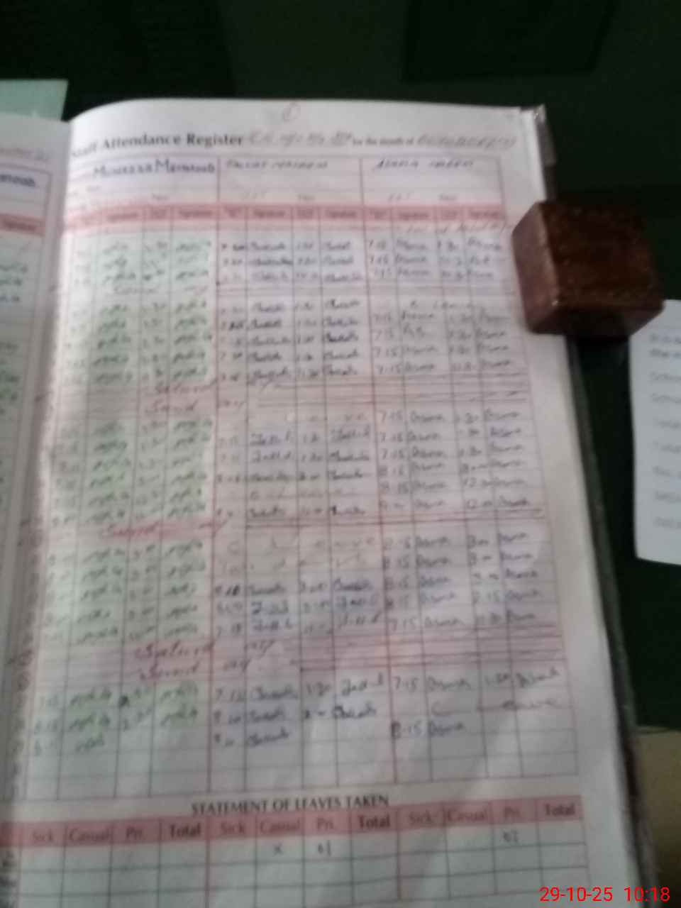 | Monitoring Date: 29-10-2025 | Start Time: 29-10-2025 09:09 AM | End Time: 29-10-2025 10:20 AM | Name of MEA: Mu**** Ak**** | |
