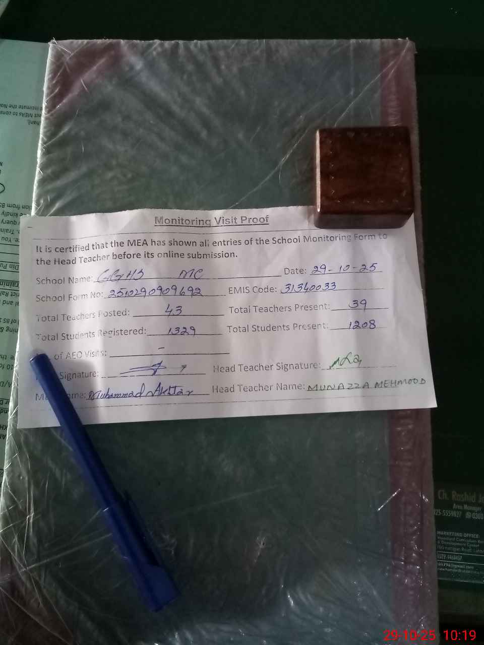 | EMIS Code: 31340033 | Name of School: GGHS MC SADIQ ABAD | |||
