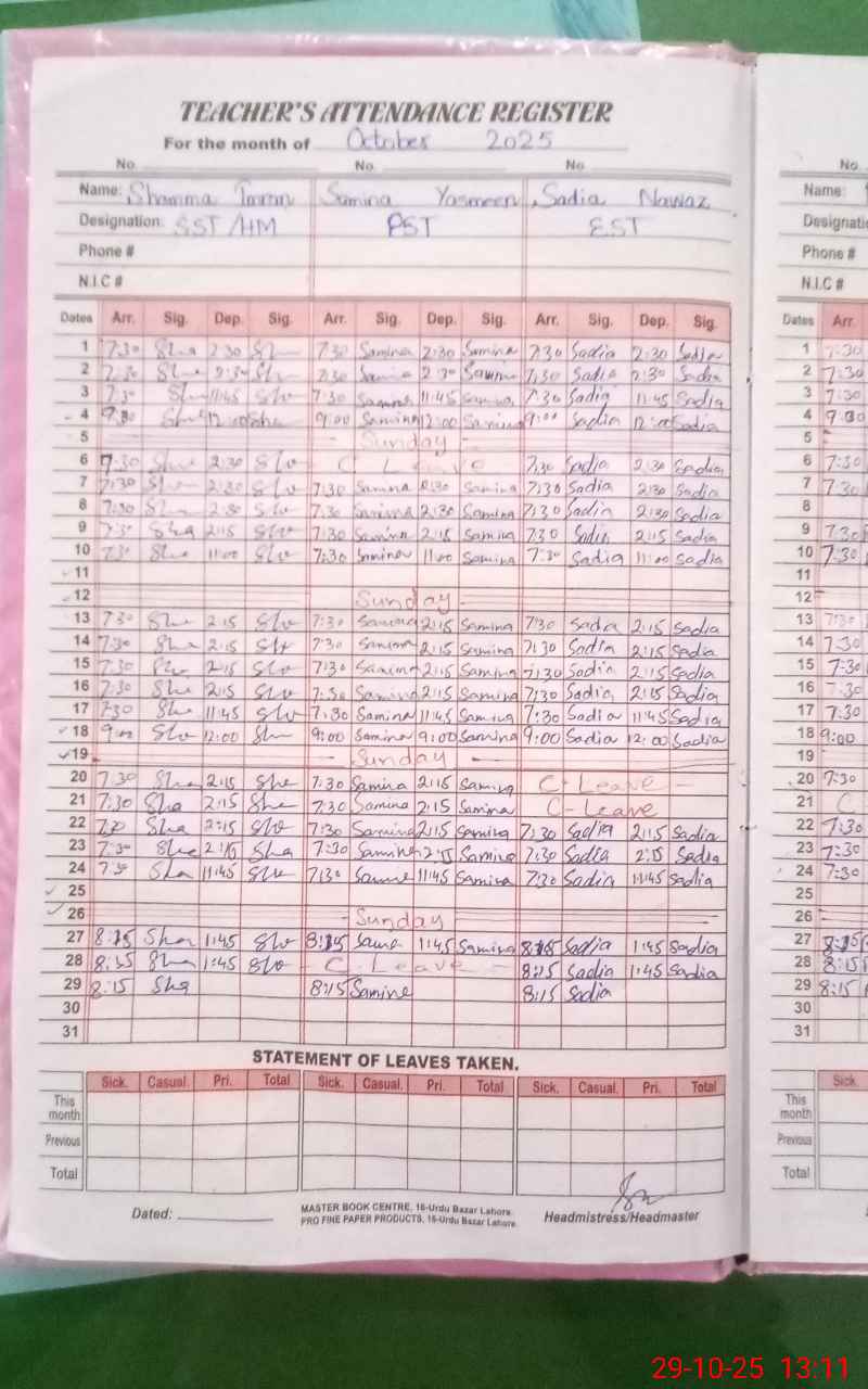 | Attendance Register | Head Teacher | MEA with School | Visit Proof |