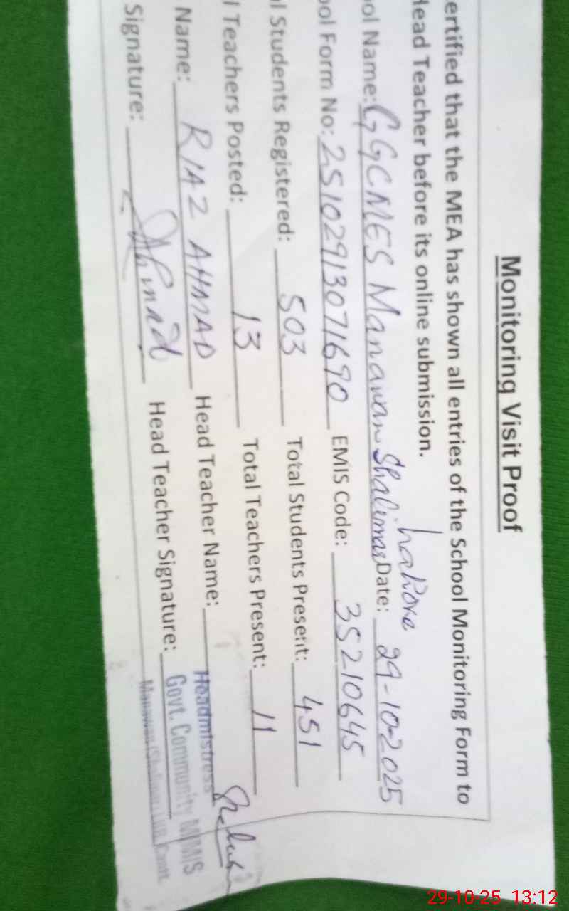 | EMIS Code: 35210645 | Name of School: GGCMES MANAWAN | |||