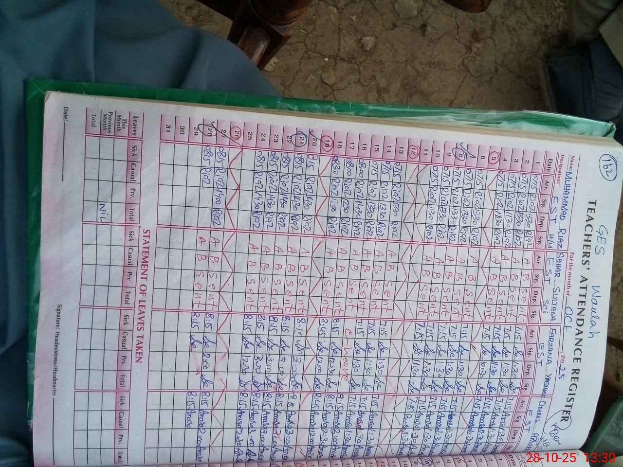 | 37**** | Sa**** Su**** | EST | Regular | 0 | 0 | 0 | 0 | 0 | 0 | 0 | 0 | 0 | Absent (Un-Authorized) |