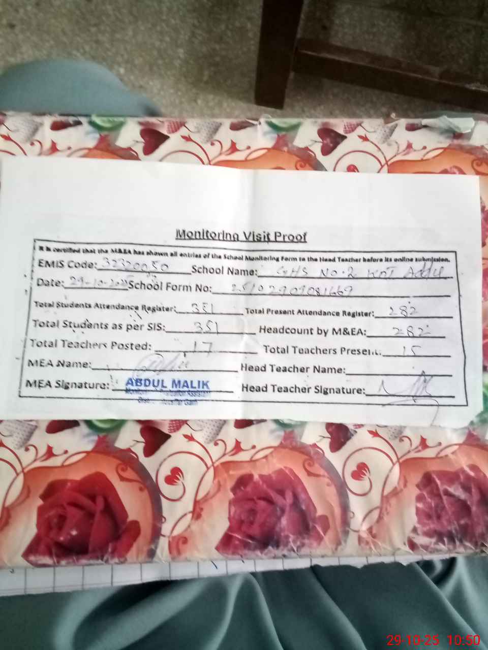 | EMIS Code: 32320050 | Name of School: GHS NO. 2 KOT ADU | |||
