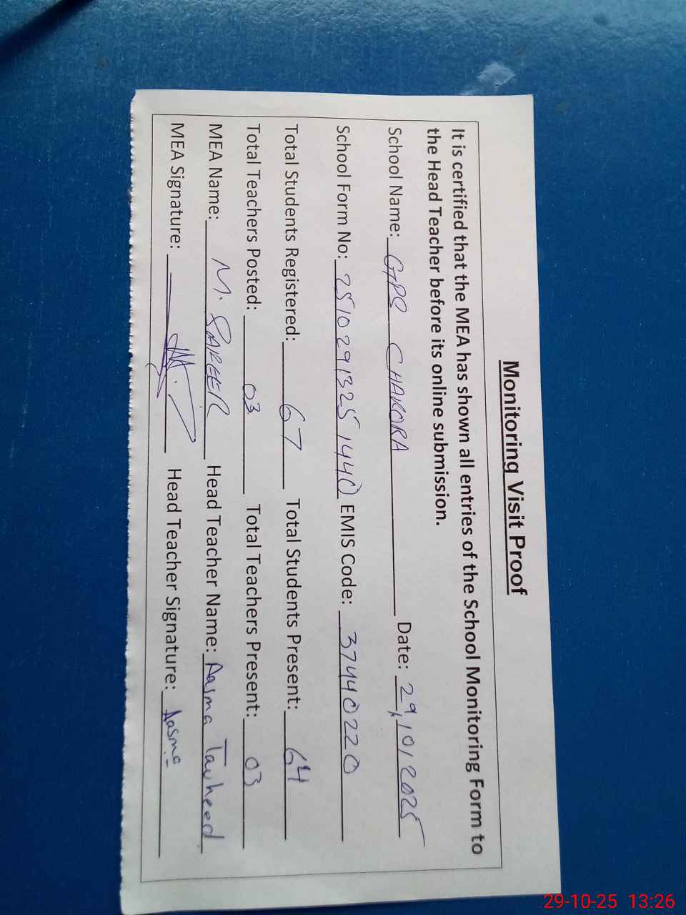 | EMIS Code: 37440220 | Name of School: GPS CHAKORA | |||