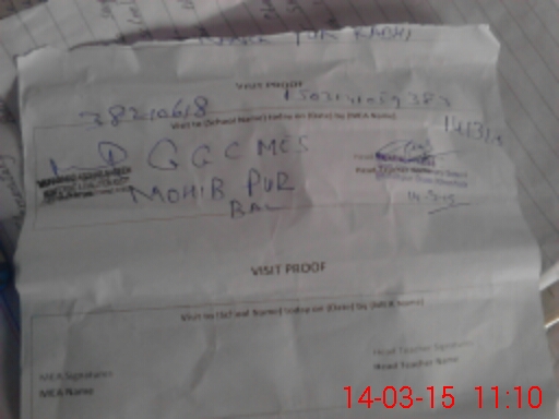 | Attendance Register | Head Teacher | MEA with School | Visit Proof |