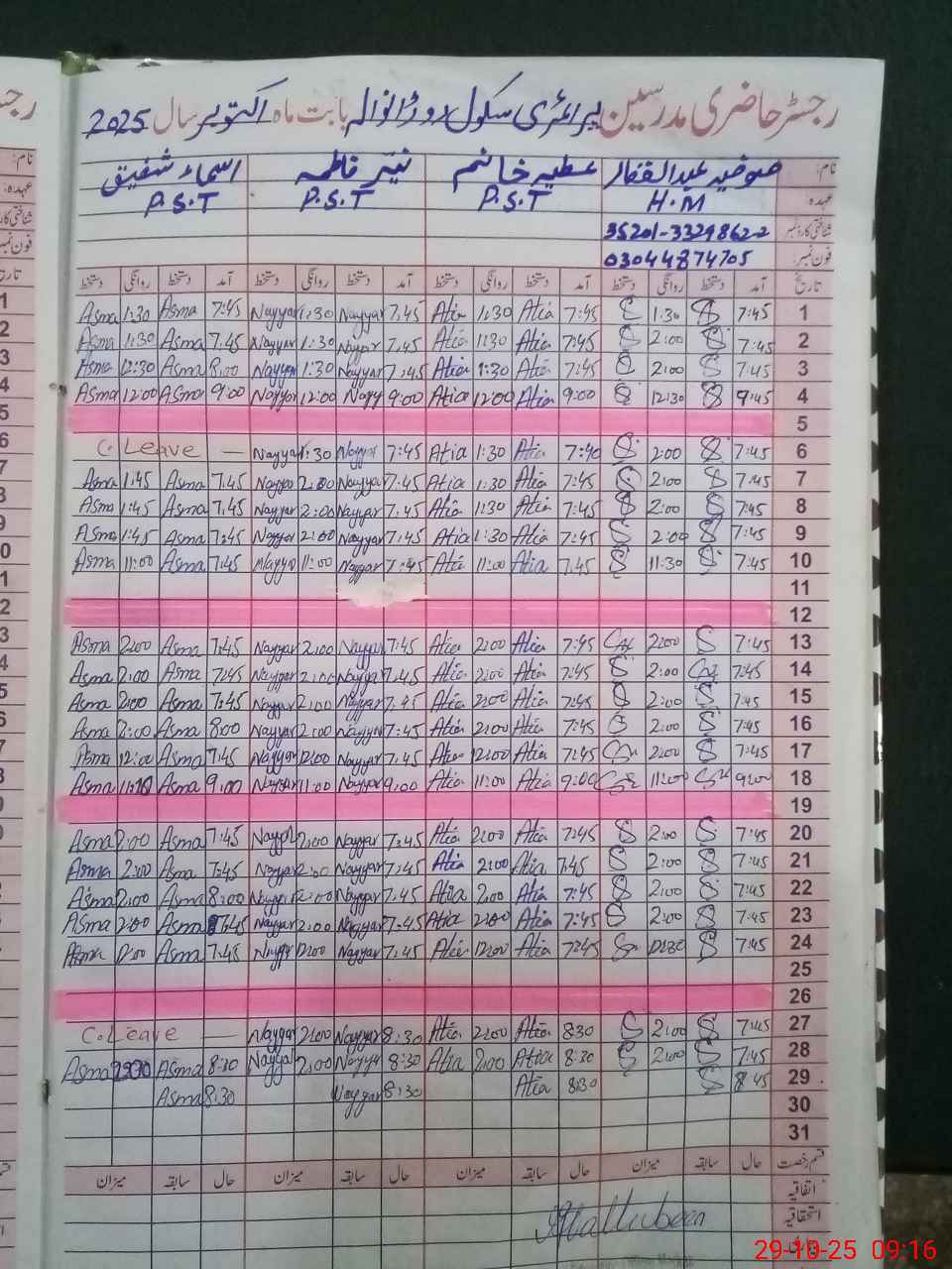 | Attendance Register | Head Teacher | MEA with School | Visit Proof |