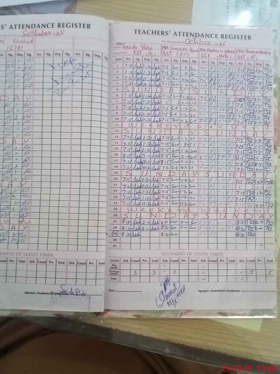 | Leave | Duty | Absent | Maternity | Medical | Ex- Pak |