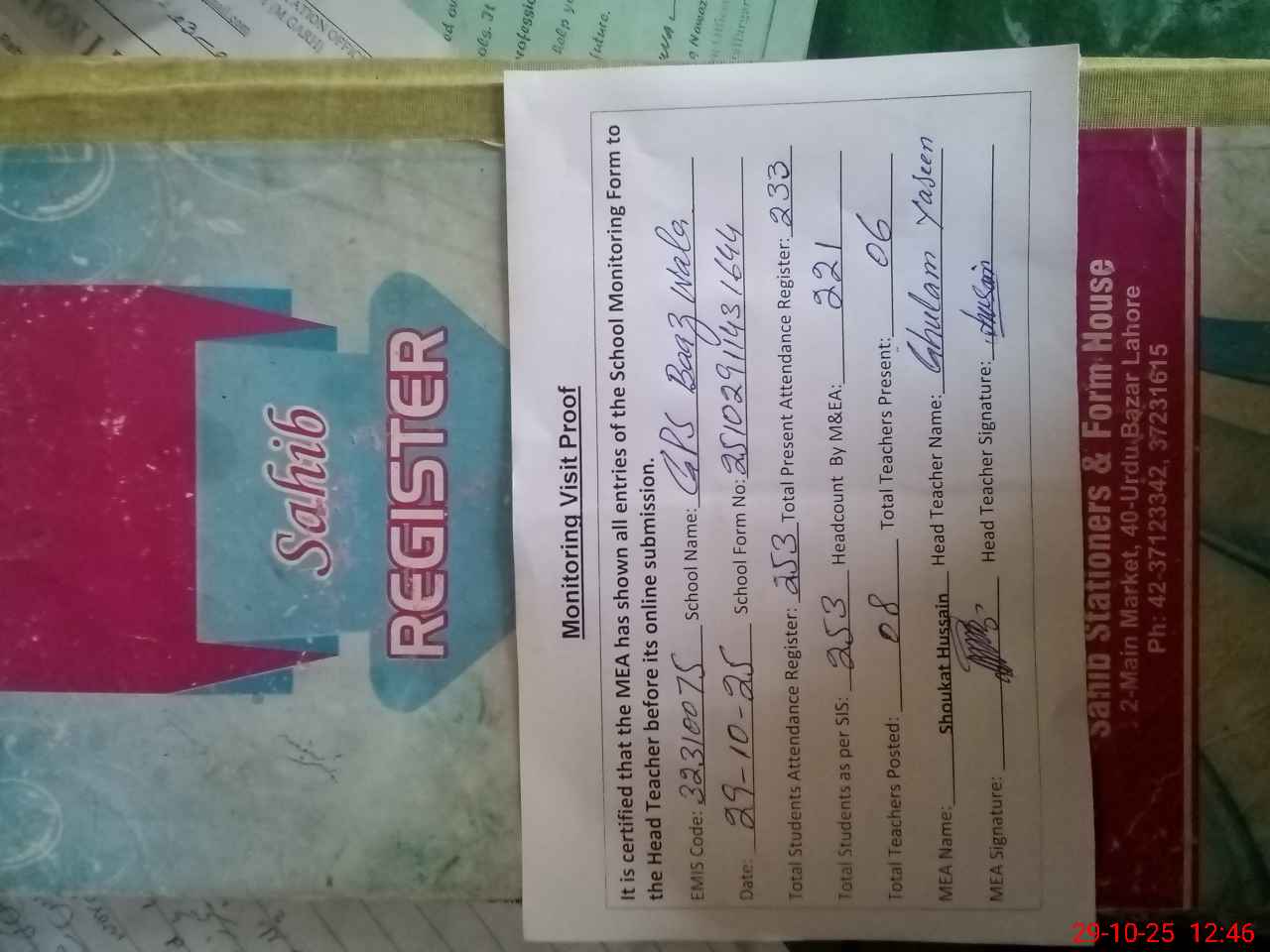 | EMIS Code: 32310075 | Name of School: GPS BAZ WALA | |||