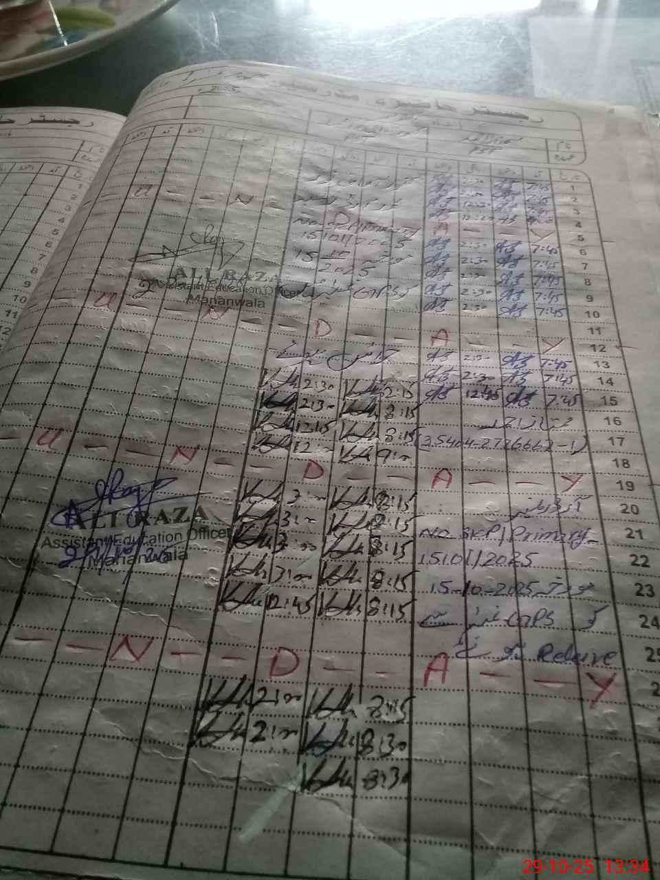 | CNIC | Full Name | Designation | R/C | Absence During Last Calender Month |