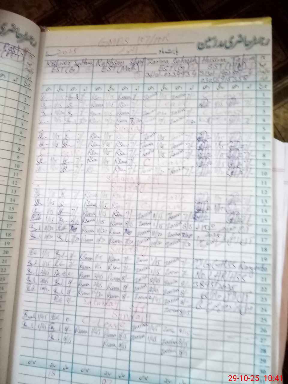 | CNIC | Full Name | Designation | R/C | Absence During Last Calender Month |