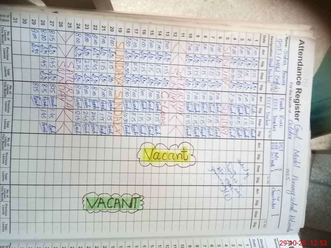 | Name: SI**** AN**** Designation: (School Headmaster's/Headmistress's) PST Phone/Cell Number: 03**** |