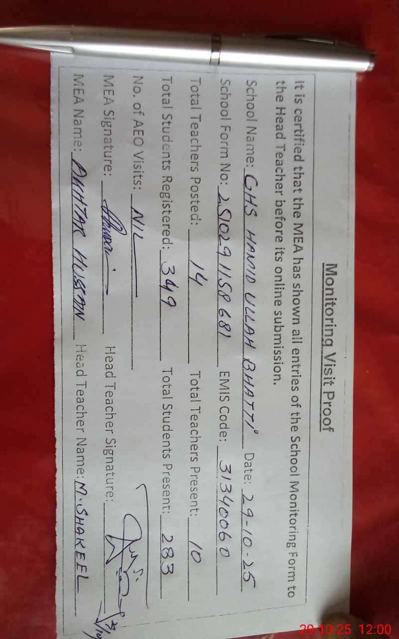| EMIS Code: 31340060 | Name of School: GHS HAMID ULLAH BHATTI | |||