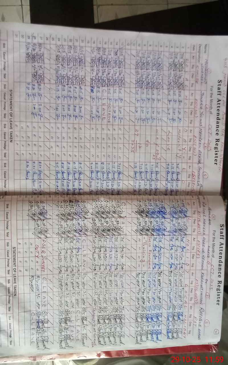 | CNIC | Full Name | Designation | R/C | Absence During Last Calender Month |