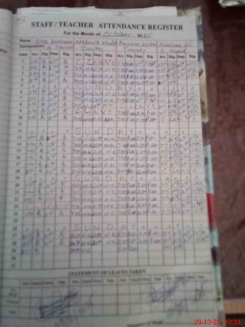 | Leave | Duty | Absent | Maternity | Medical | Ex- Pak |