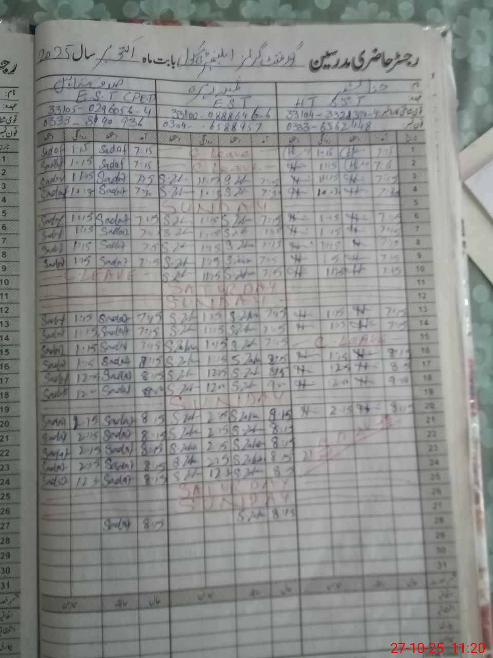 | 33**** | Sa**** Ih**** | EST | Regular | 0 | 0 | 0 | 0 | 0 | 0 | 0 | 0 | 0 | Casual |