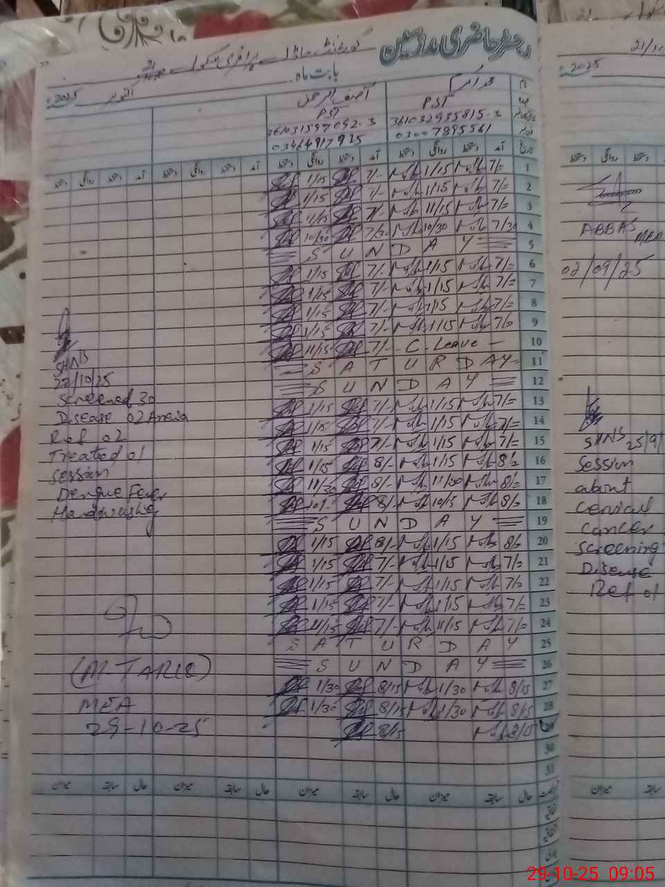 | CNIC | Full Name | Designation | R/C | Absence During Last Calender Month |