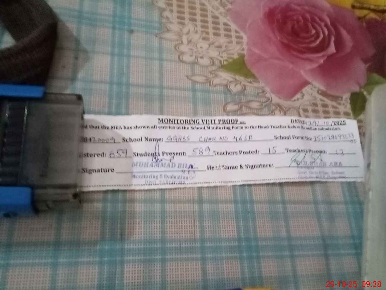| EMIS Code: 38420009 | Name of School: GGHSS CHAK NO.46 SB | |||