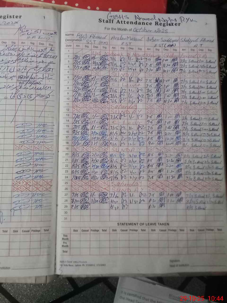| Leave | Duty | Absent | Maternity | Medical | Ex- Pak |