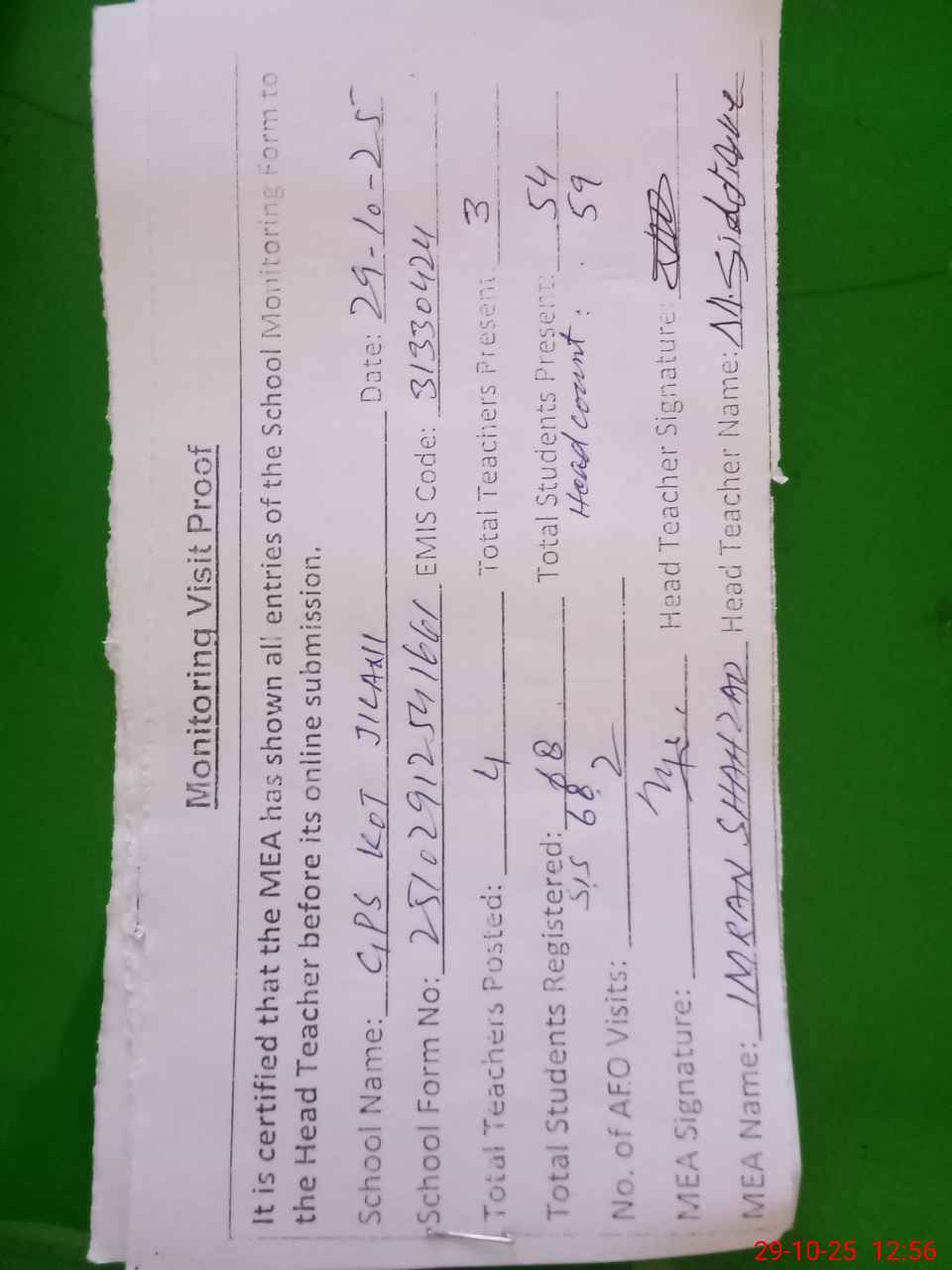 | EMIS Code: 31330424 | Name of School: GPS KOT JAILANI | |||
