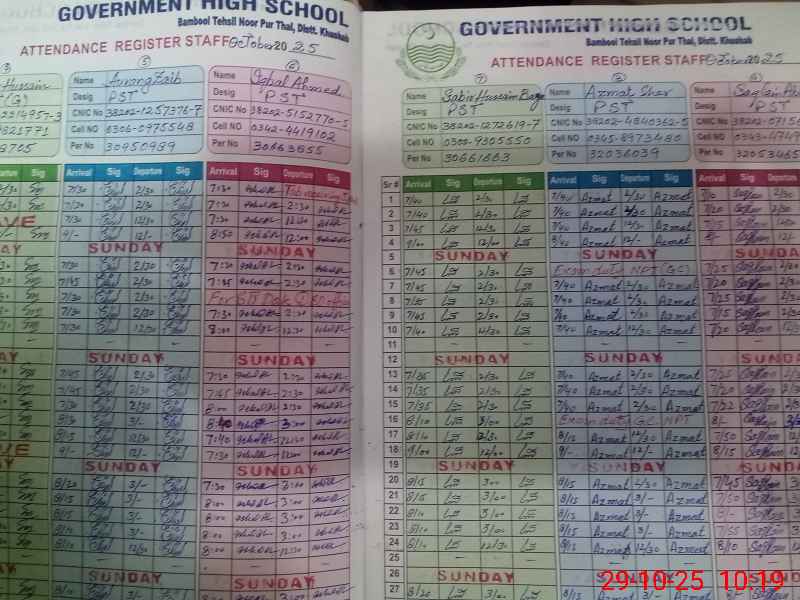 | CNIC | Full Name | Designation | R/C | Absence During Last Calender Month |
