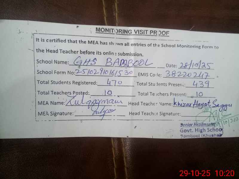 | EMIS Code: 38220247 | Name of School: GHS BAMBOOL | |||