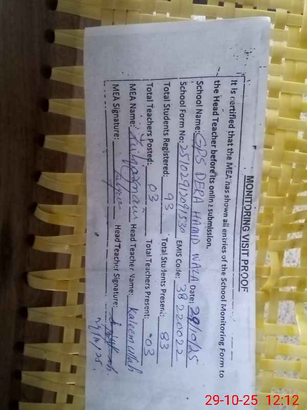 | EMIS Code: 38220022 | Name of School: GPS DERA HAMID WALA | |||