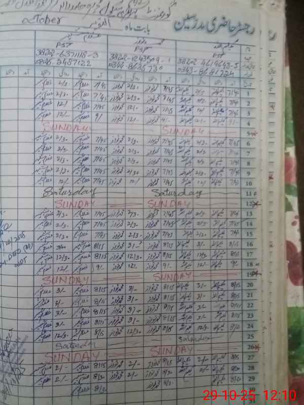 | CNIC | Full Name | Designation | R/C | Absence During Last Calender Month |