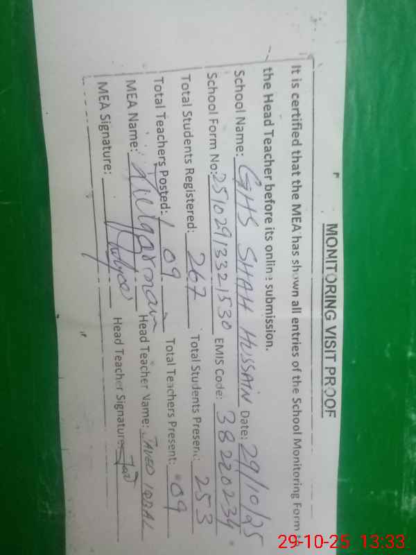 | EMIS Code: 38220234 | Name of School: GHS SHAH HUSSAIN | |||