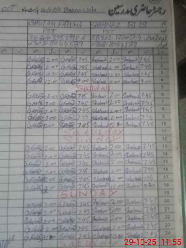 | Name: SH**** BI**** Designation: (School Headmaster's/Headmistress's) PST Phone/Cell Number: 03**** |