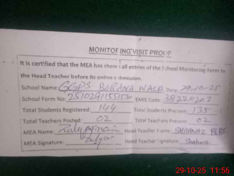 | EMIS Code: 38220203 | Name of School: GGPS BURANA WALA | |||