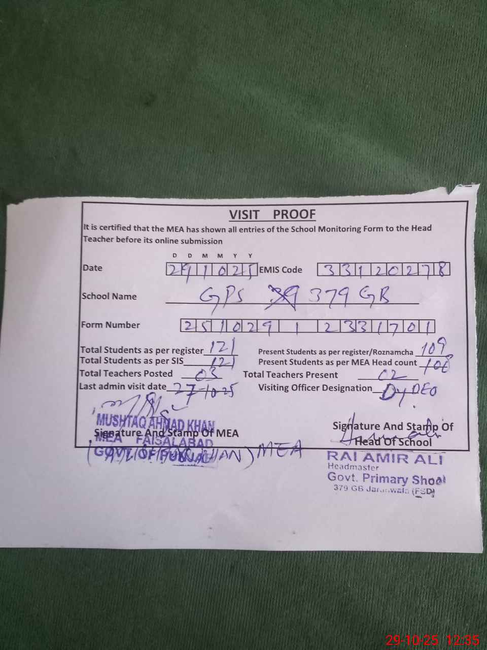 | EMIS Code: 33120278 | Name of School: GPS 379 GB | |||