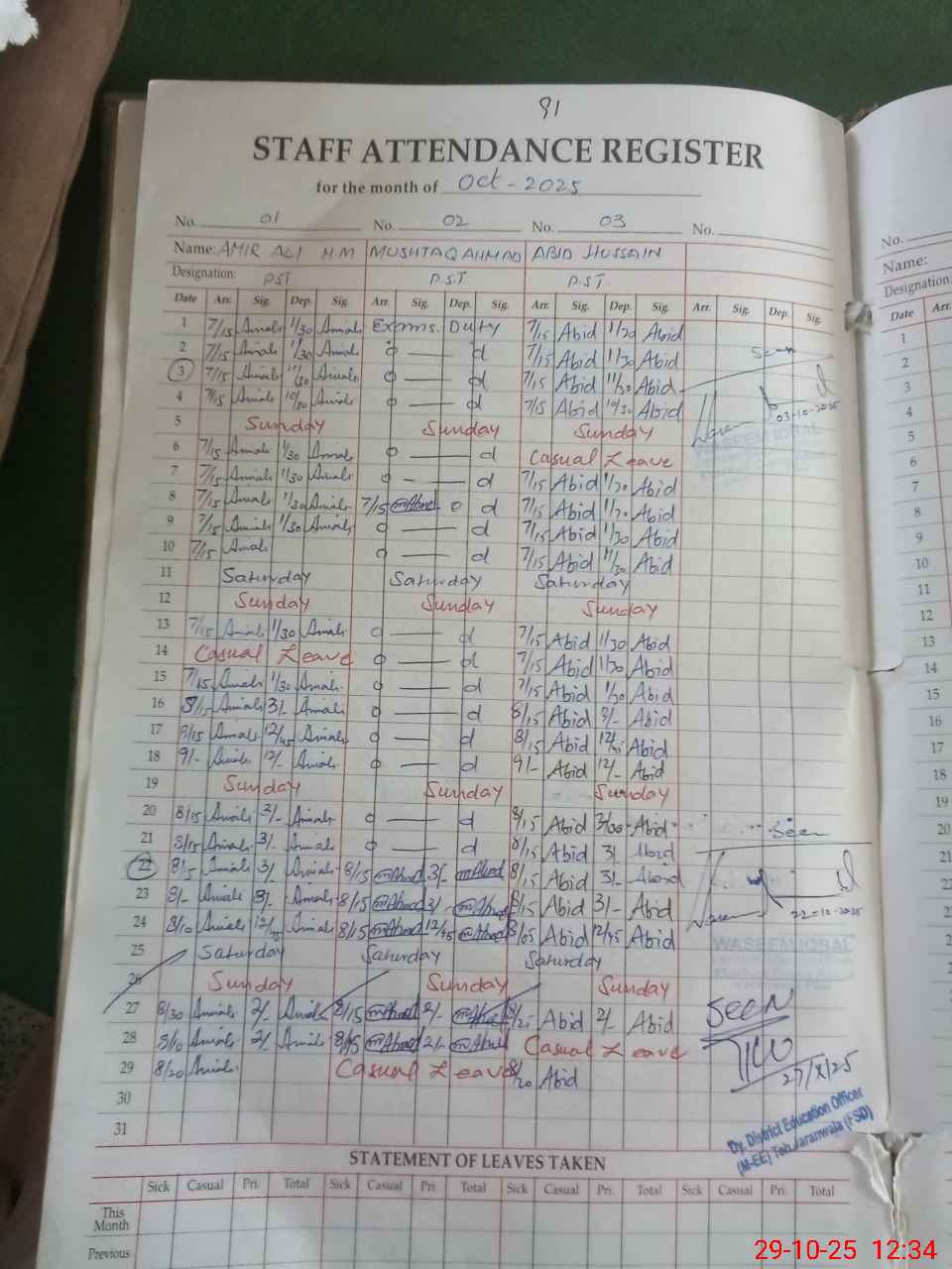 | Name: AM**** AL**** Designation: (School Headmaster's/Headmistress's) PST Phone/Cell Number: 03**** |