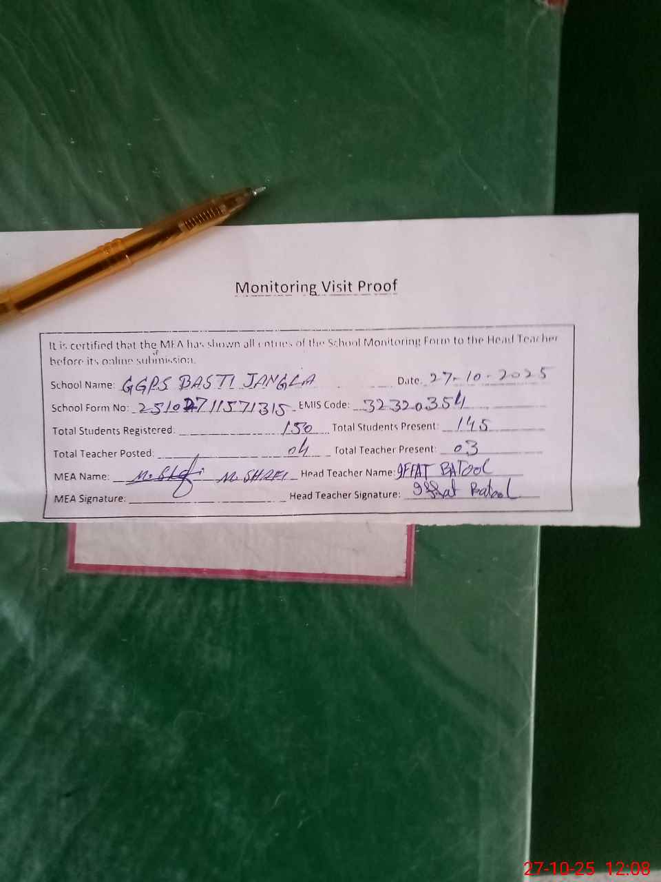 | EMIS Code: 32320354 | Name of School: GGPS BASTI JANGLA | |||