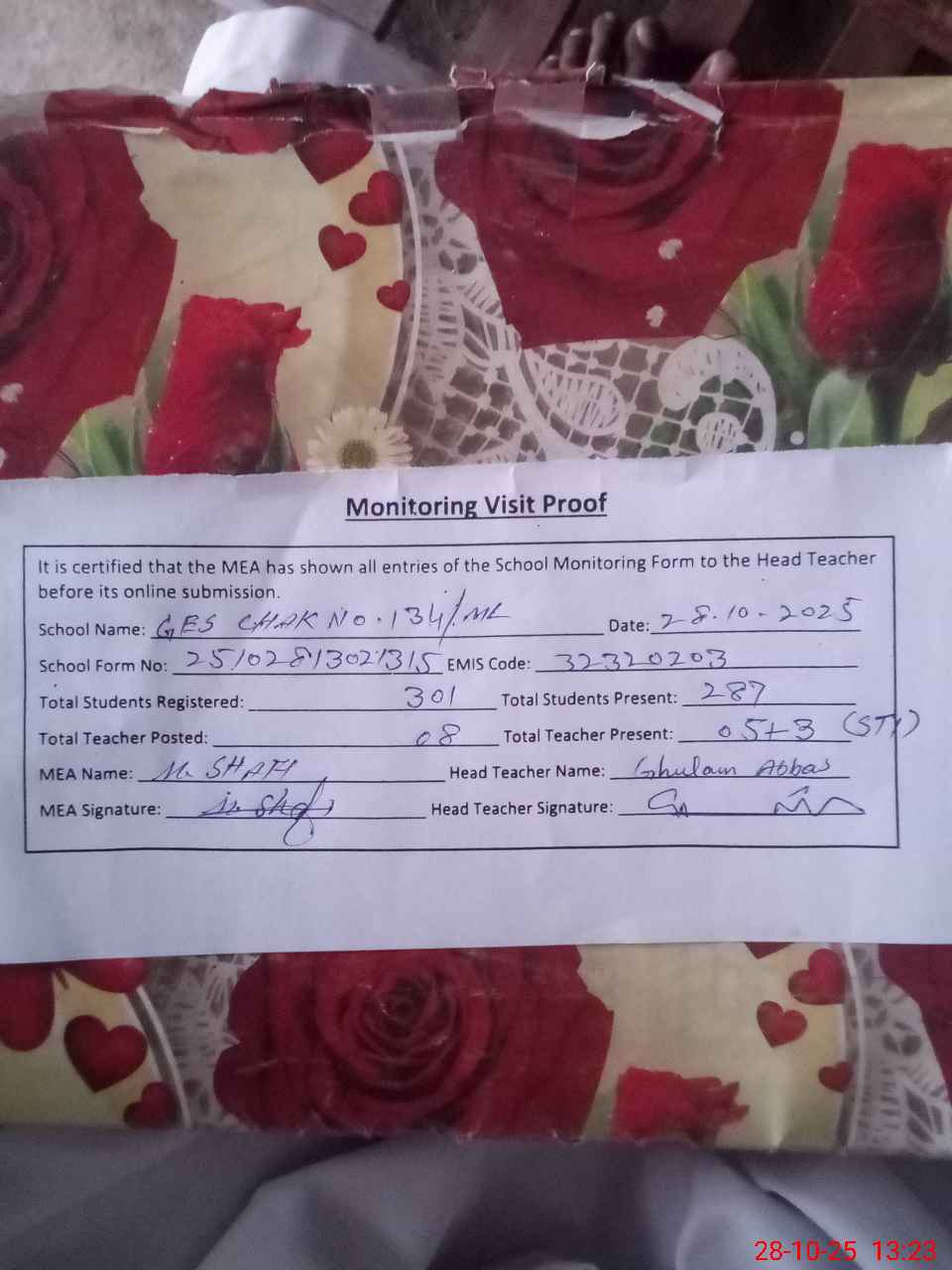 | EMIS Code: 32320203 | Name of School: GES CHAK NO. 134/ML | |||