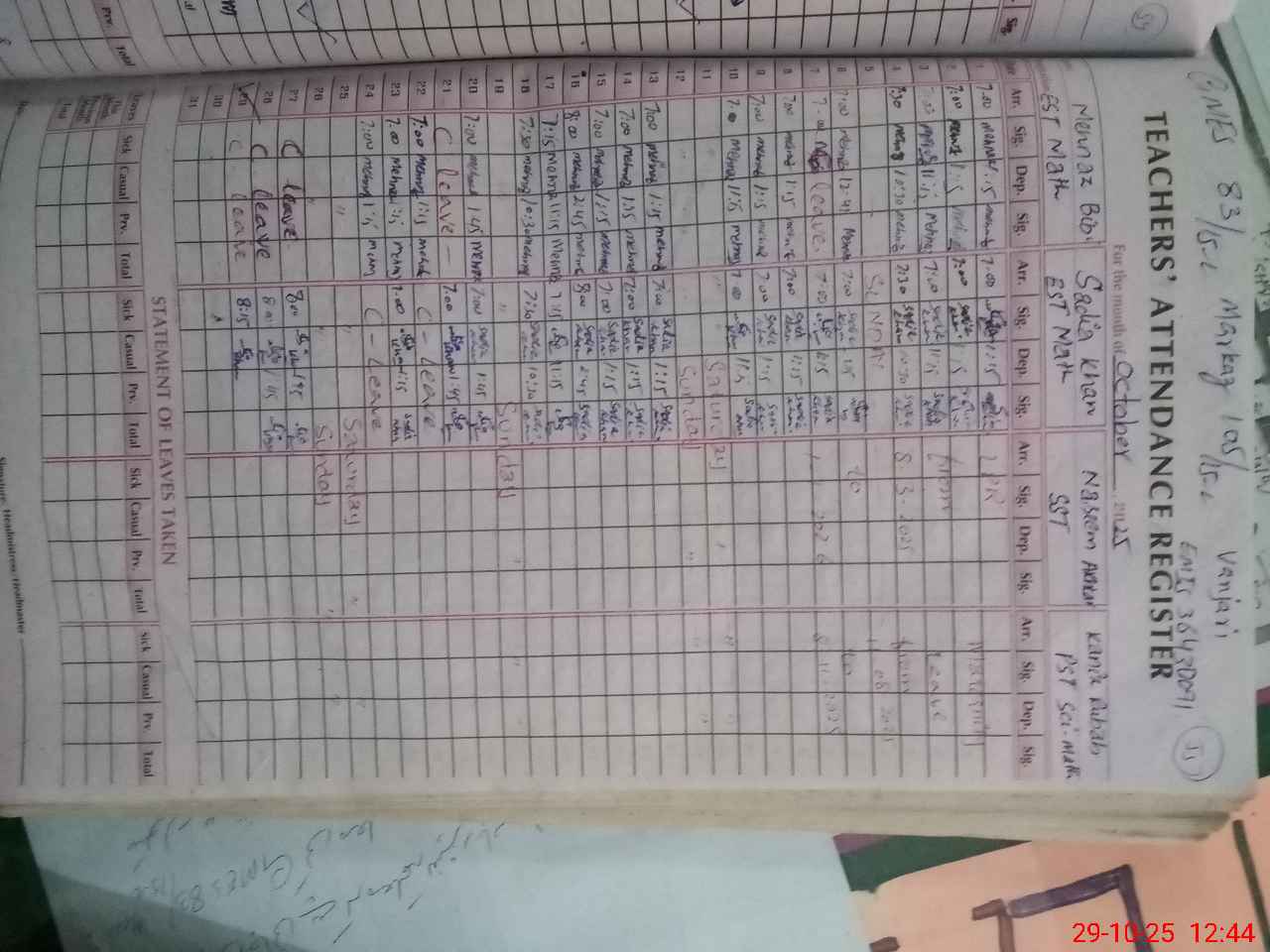 | Attendance Register | Head Teacher | MEA with School | Visit Proof |