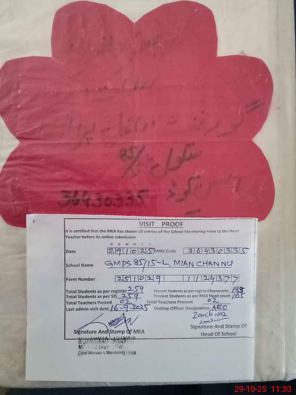 | EMIS Code: 36430335 | Name of School: GMPS 85/15-L, P/O 84/15-L, MIAN CHANNU | |||