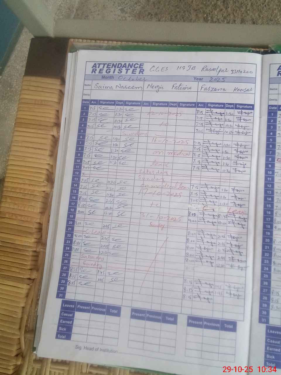 | Leave | Duty | Absent | Maternity | Medical | Ex- Pak |