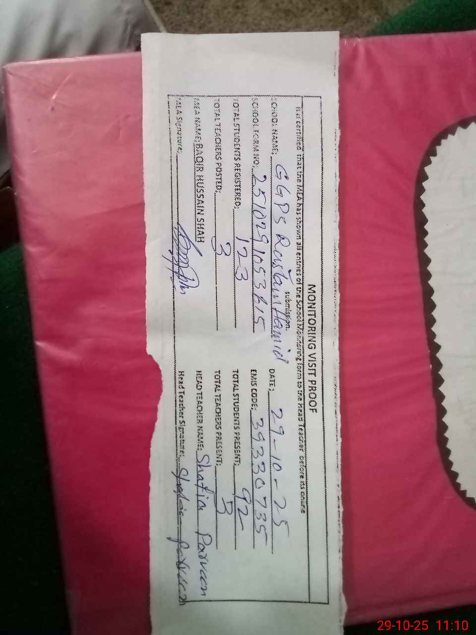 | EMIS Code: 39330735 | Name of School: GGPS RUSTAM HAMID | |||