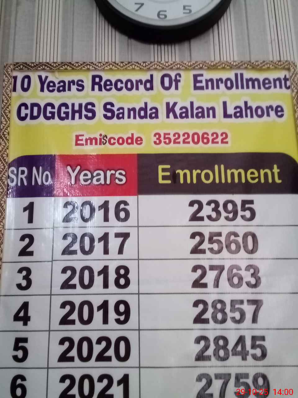 | EMIS Code: 35220622 | Name of School: GGHS SANDA KALAN (EX-MCL) | |||