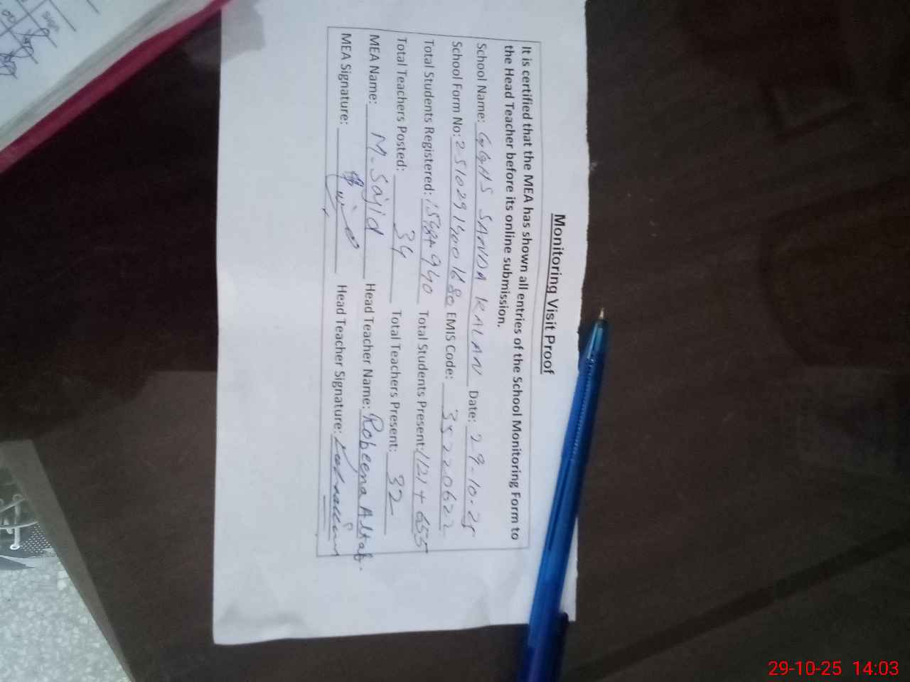 | Certified that this School was Inspected by the Undersigned MEA/DMO Today and the Information Stated Above is as Per Record. | |||||