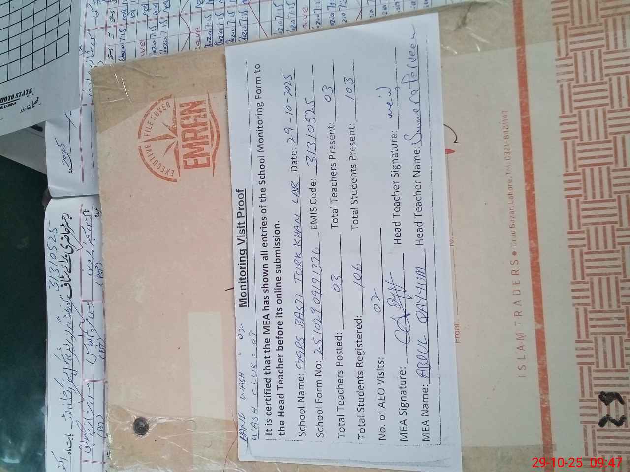| EMIS Code: 31310525 | Name of School: GGPS BASTI TURK KHAN LAAR | |||