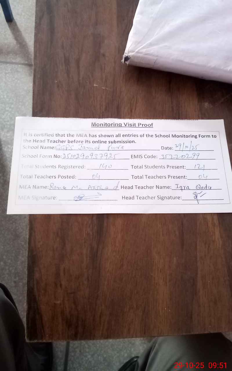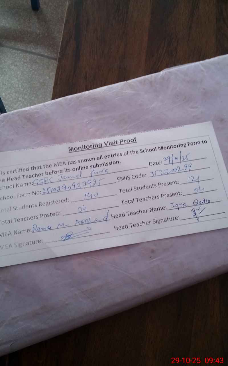 | EMIS Code: 35220299 | Name of School: GGPS JAMALPURA RAIWIND | |||