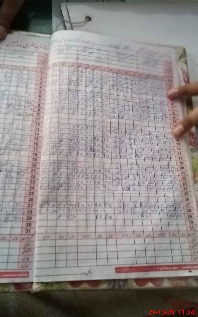 | CNIC | Full Name | Designation | R/C | Absence During Last Calender Month |