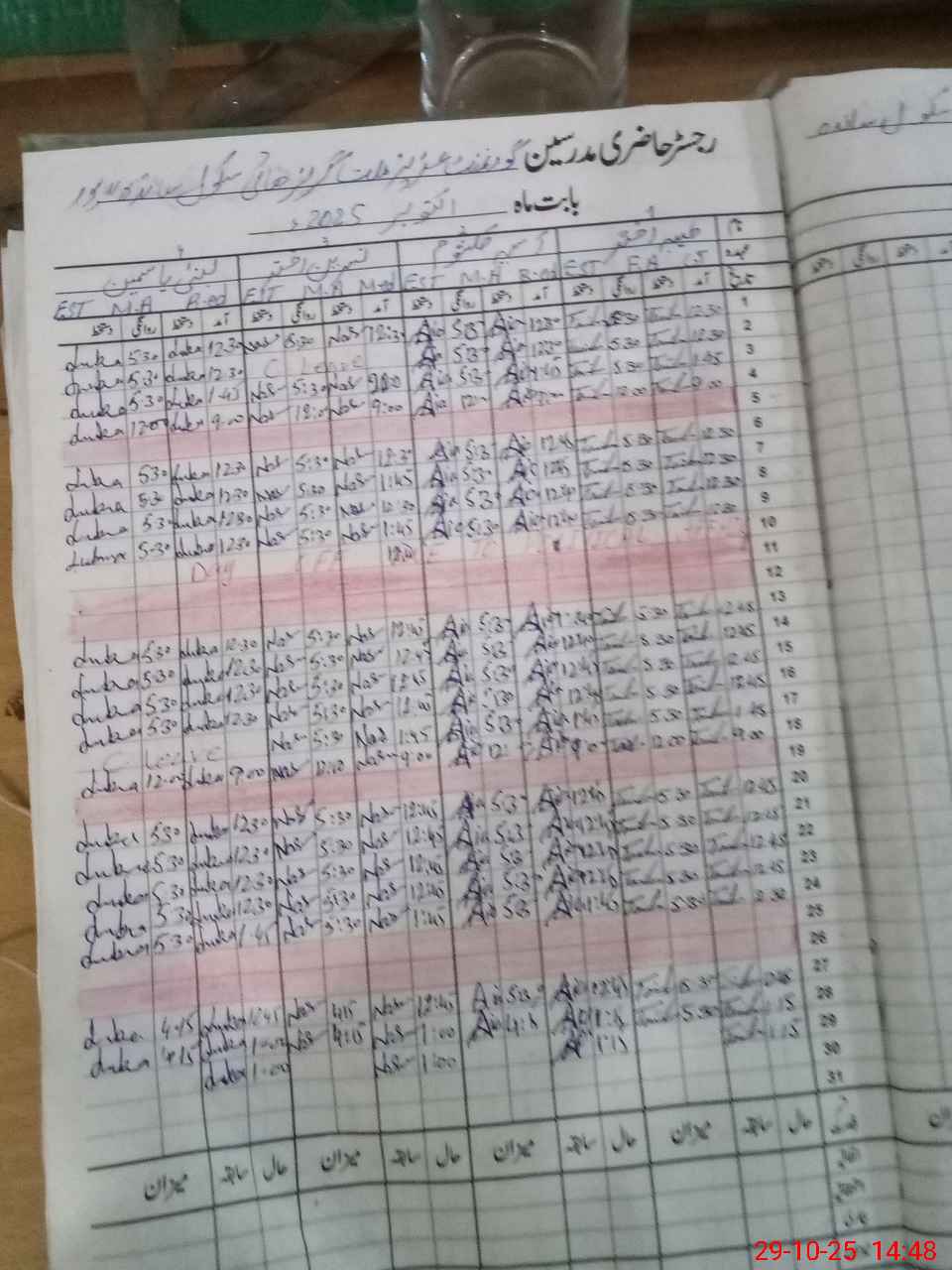 | CNIC | Full Name | Designation | R/C | Absence During Last Calender Month |