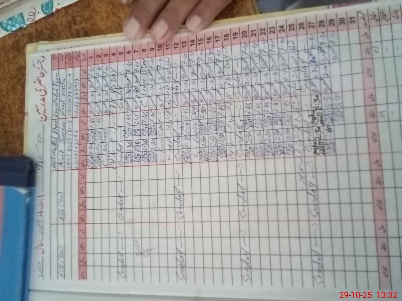 | CNIC | Full Name | Designation | R/C | Absence During Last Calender Month |