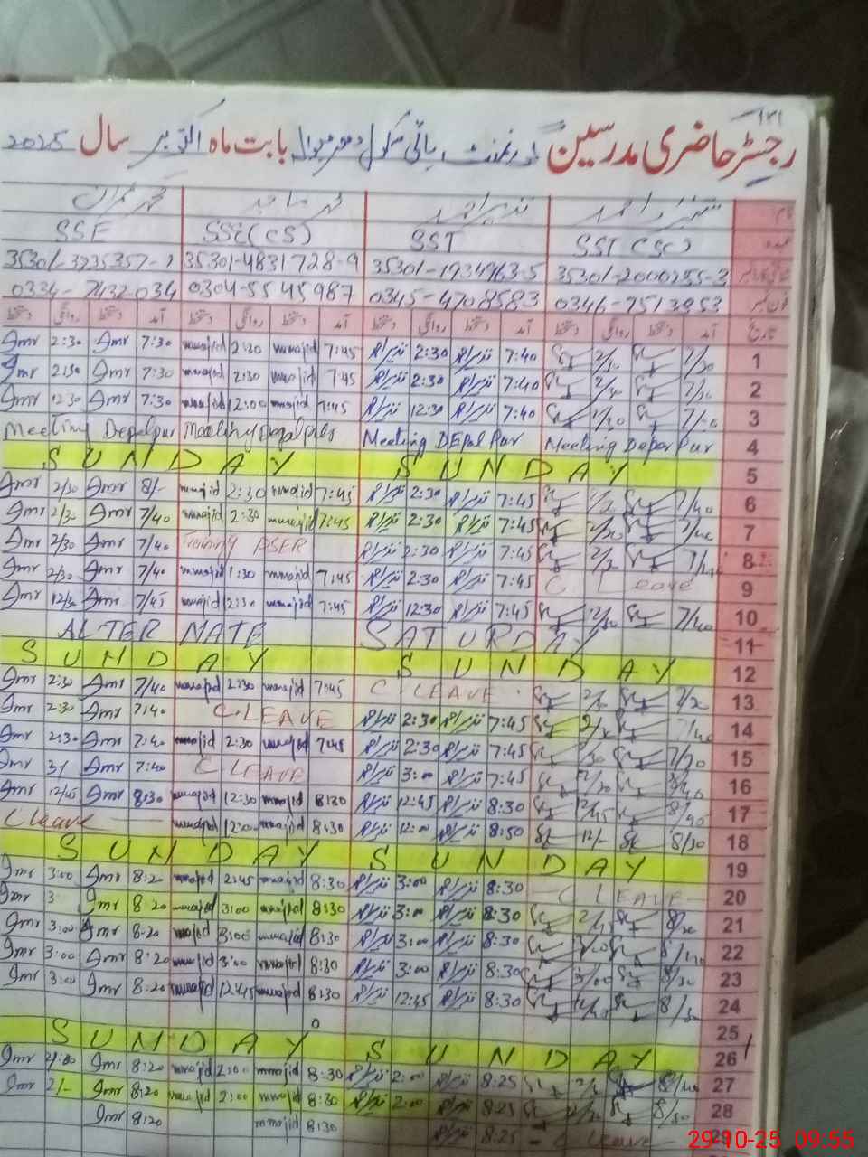 | CNIC | Full Name | Designation | R/C | Absence During Last Calender Month |