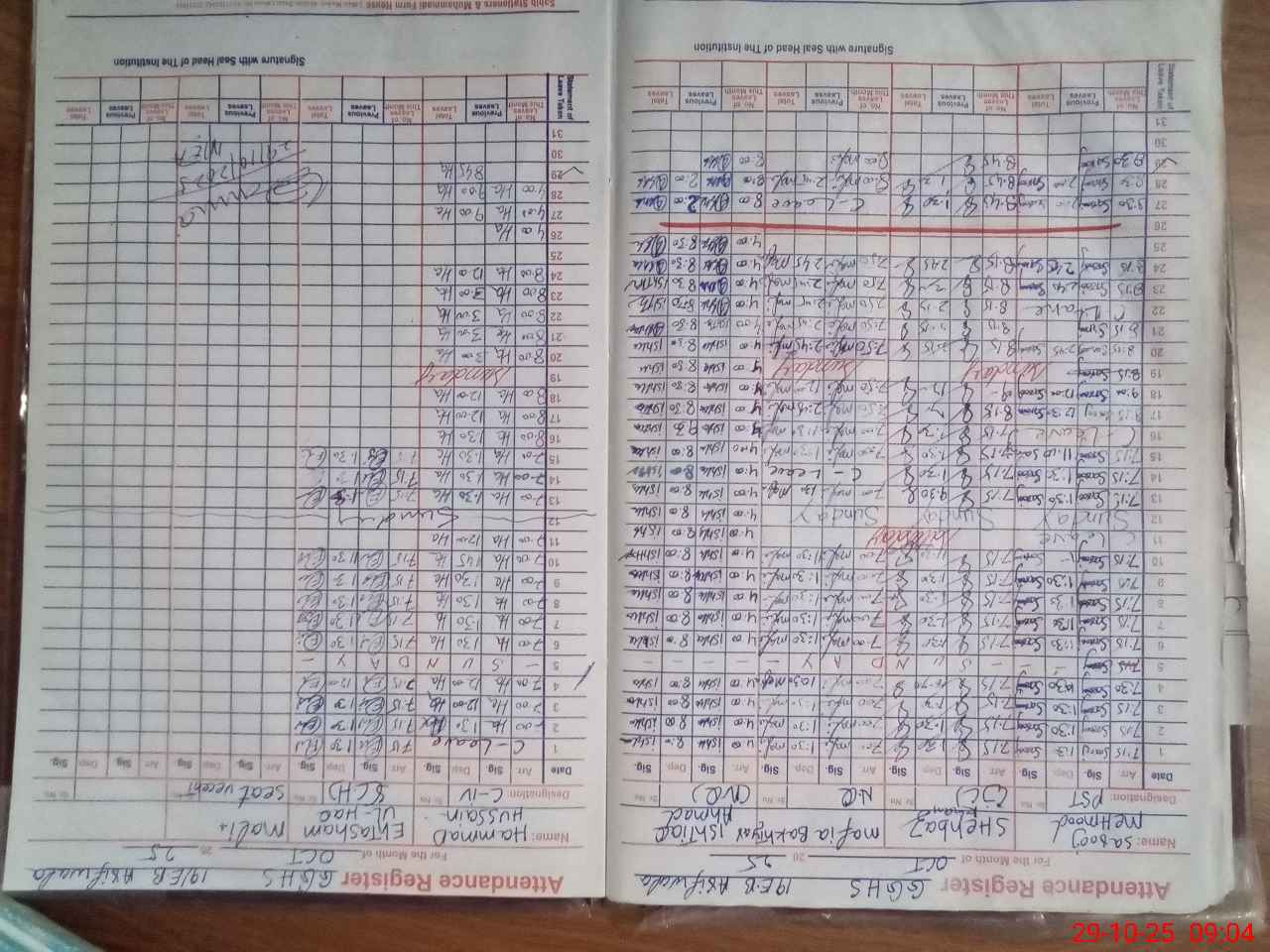 | CNIC | Full Name | Designation | R/C | Absence During Last Calender Month |